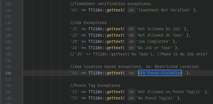 To find the descriptions, I watch the API stack trace via the browser inspector in Chrome and notice the JSON array includes a description in an element called exception_policy_type.
