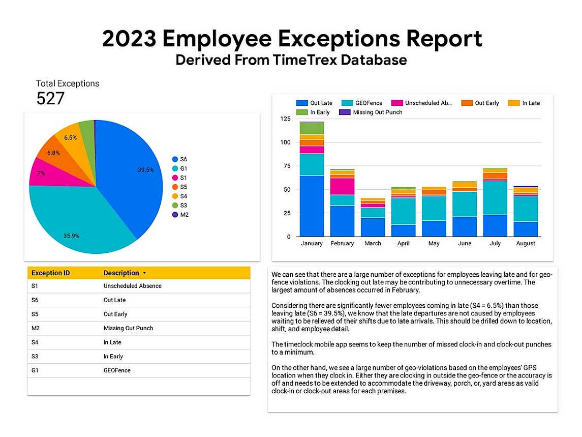 The TimeTrex application has many built in reporting features but nothing out the box for charts specific to itemized metrics. The client wanted to see how the TimeTrex mobile app feature was performing in terms of employee clocking behavior. Also, they wanted to know if they could get any insight to clocking behavior across the months starting since the New Year.